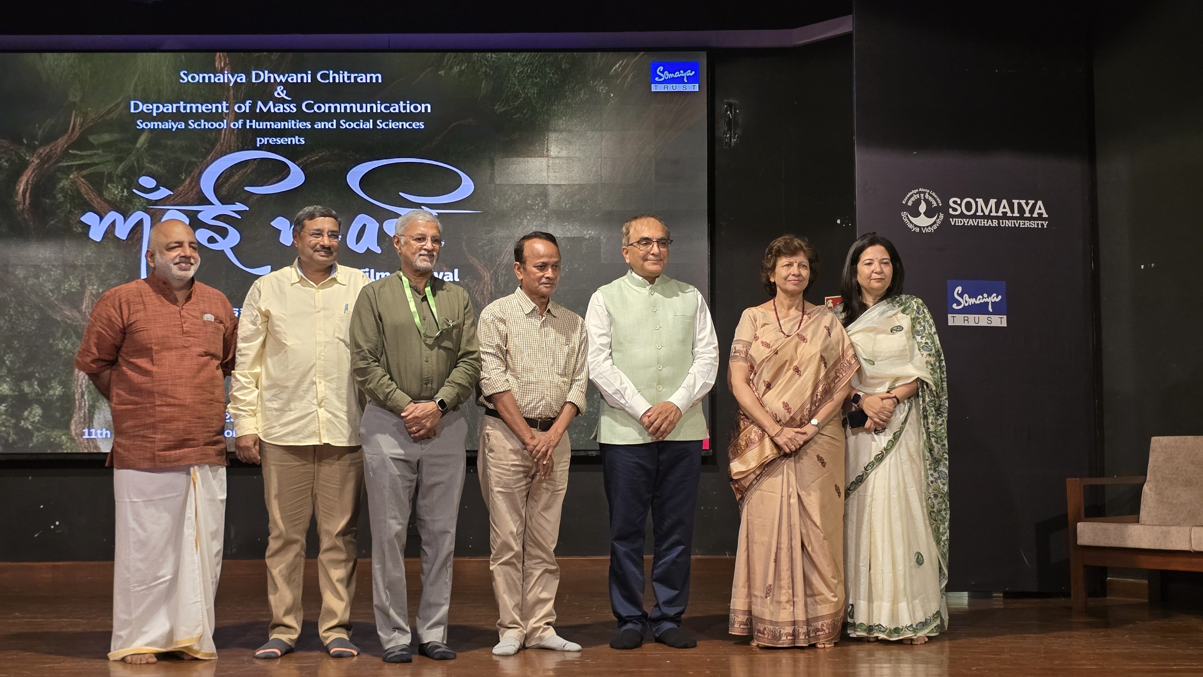 Somaiya Vidyavihar University successfully hosted Maई Maटी, a two-day film festival and conversation series. The festival was organised by Somaiya Dhwani Chitram, the university’s newly formed film school, the Department of Mass Communication, Somaiya School of Humanities and Social Sciences, and CASCADE (Centre for Achieving Sustainable Climate Action, Development, and Engagement), Somaiya Institute for Research & Consultancy.